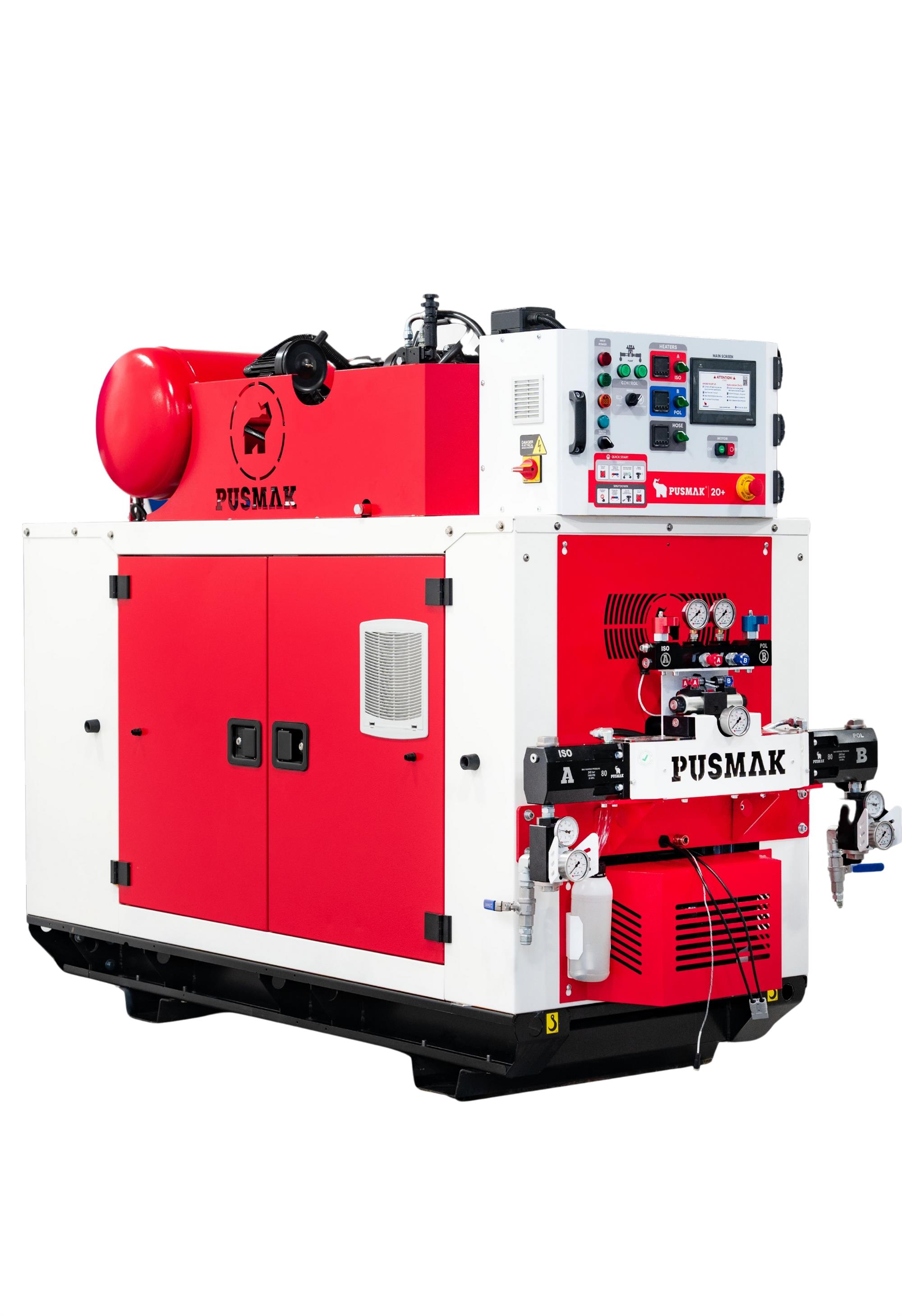Elektrik temininde güçlük çekilen iş sahaları için tasarlanmış poliüretan köpük ve poliüreya sprey makinesidir.