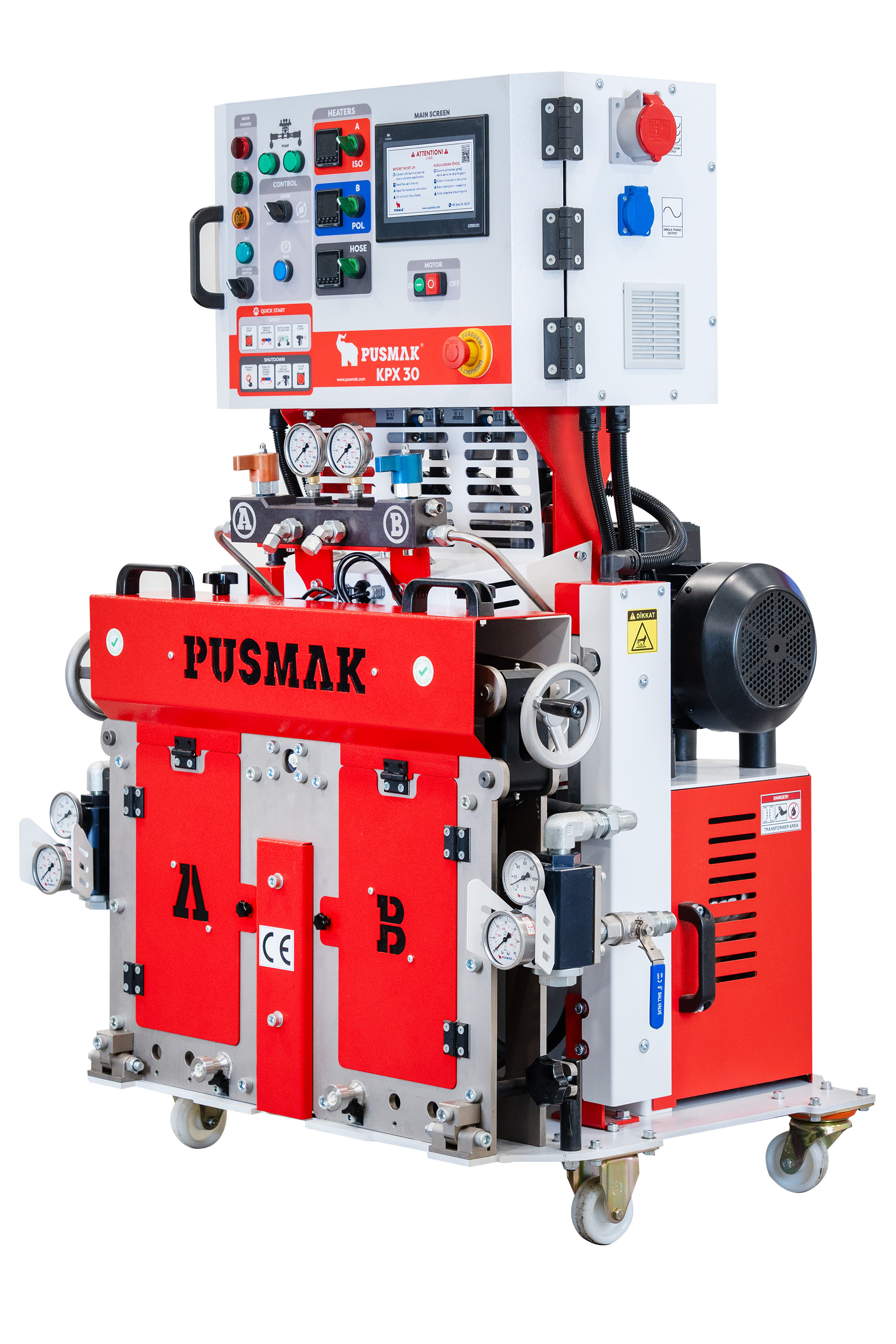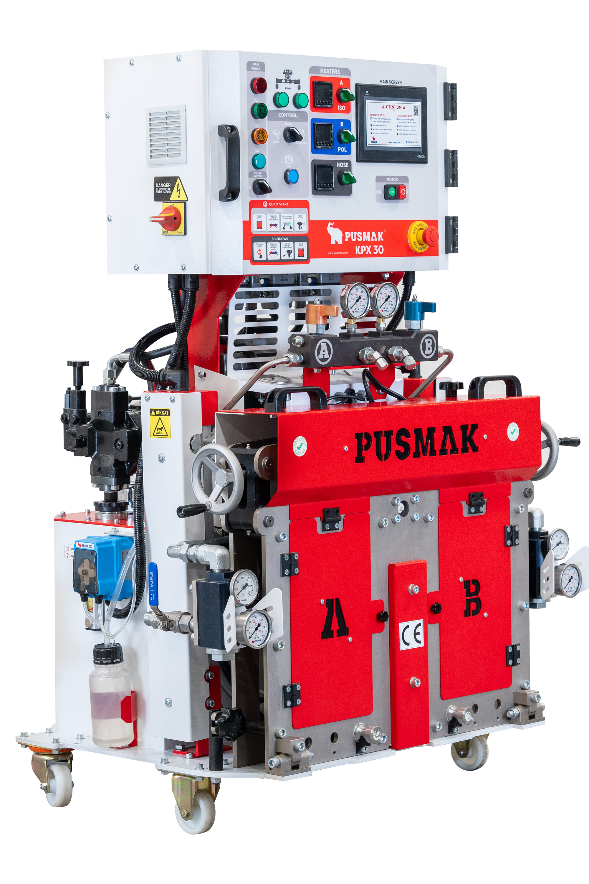 Pusmak'ın hidrolik tahrikli Purmix oranlama makinesi, Conipur ve Pır gibi değişken oranlı kaplama malzemeleri için tasarlanmış ve üretilmiştir. Ayrıca eşit oranda standart poliüre elastomerleri ve sprey köpüğü püskürtebilir. Mekanik oranlama sistemi ile Purmix, uygulamacılara 1:1 ila 1:2,2 arasında çok iyi oranlanmış iki bileşen karışımı sağlar. Oranlama, ihtiyaca göre özel olarak tasarlanmış karıştırma odaları ile de desteklenmektedir.