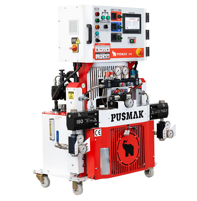 Pusmak'ın hidrolik tahrikli KPX 50 oranlama makinesi, sprey köpük üreticileri için tasarlanmış ve üretilmiştir.